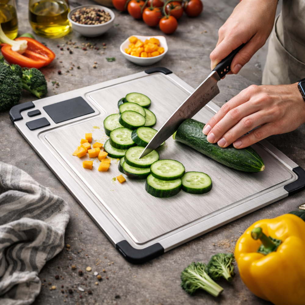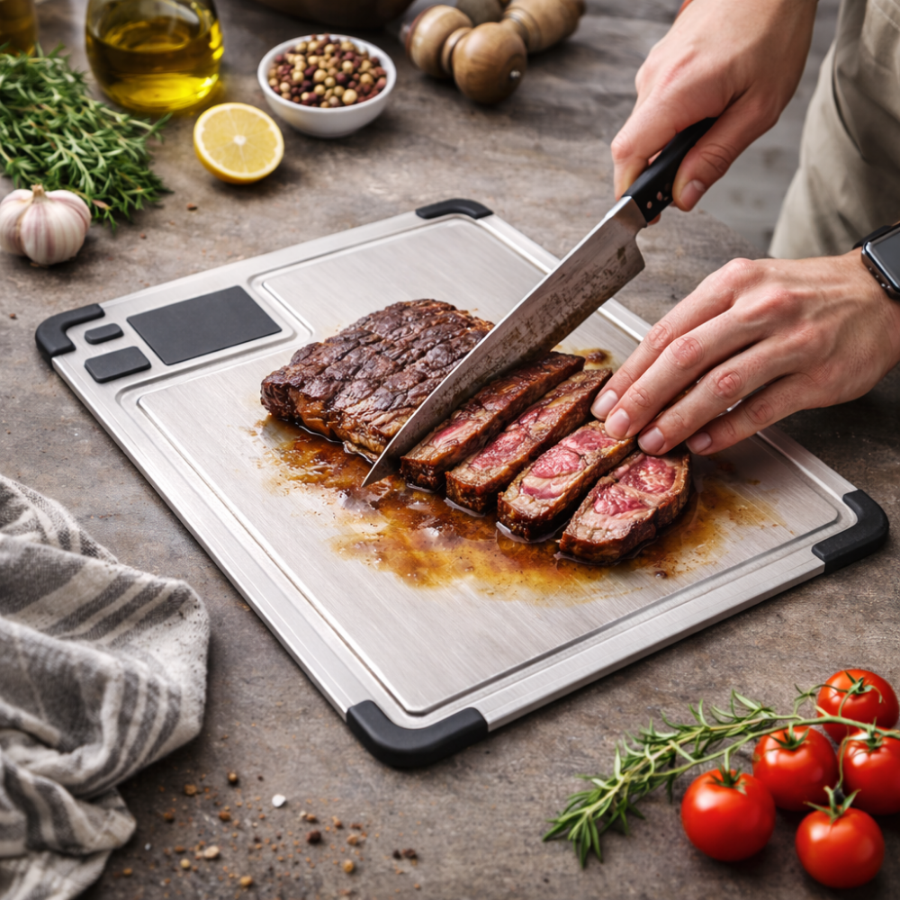 Für mich als Koch ist es wichtig, auch vernünftige Bretter zur Hand zu haben. Ich halte wenig von Plastik- oder Holzbrettern, weswegen ich auf die Titanbretter von Kovali setze. Kein Geruch, keine Verfärbungen und keine stumpfen Messer mehr. Die Qualität ist ausgezeichnet und man merkt die hochwertige Verarbeitung. Absolute Kaufempfehlung!